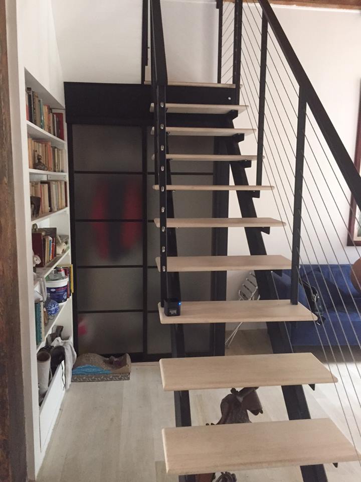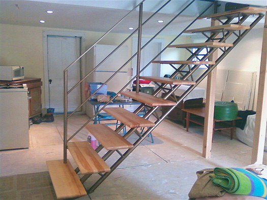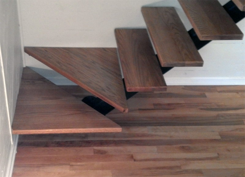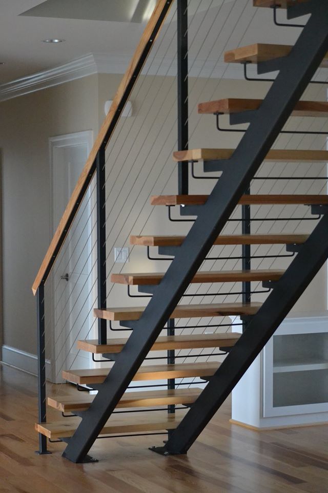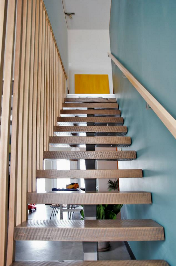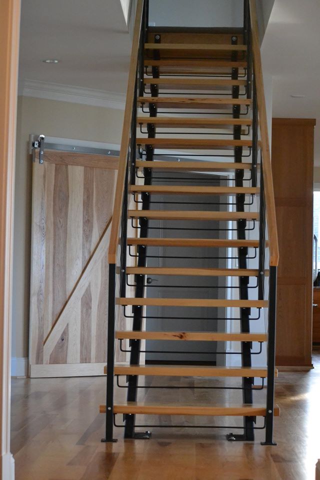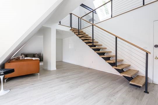 - Single Stringer: One of the most modern and contemporary looking straight staircases today, single stringer stairs use a single support beam through the center. These provide a more open and geometric appearance, as they do not block the view of other rooms.