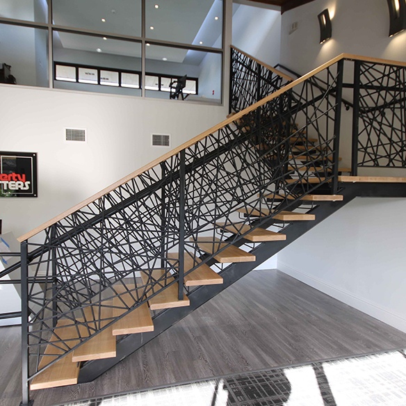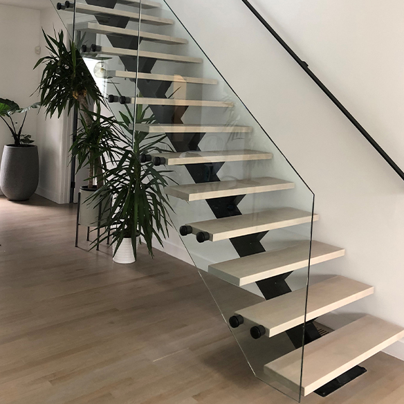 Steel or stainless-steel stringers combine with open riser treads to create our straight stairs, known for their keen strength and durability.